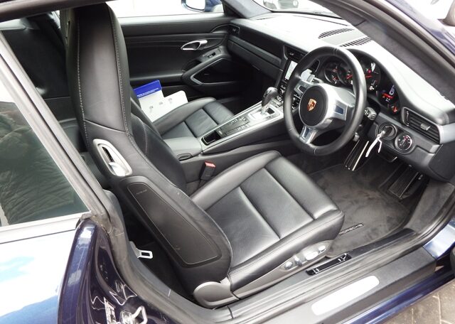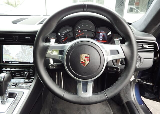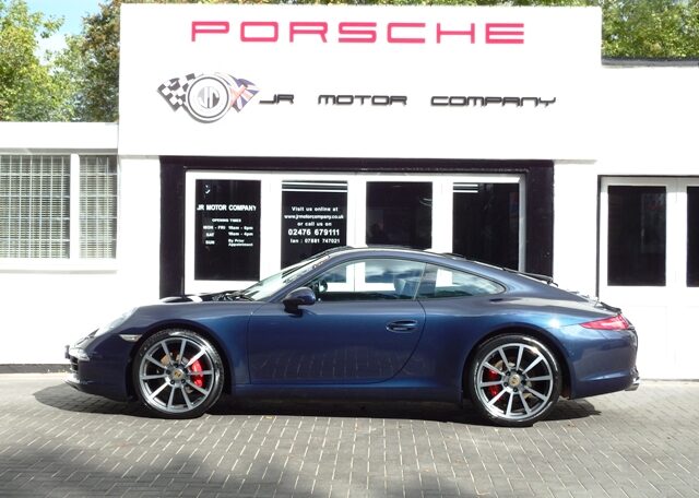 Cars like this dont come around very often! This is a huge specification 991 3.4 Carrera 2 PDK Finished in Dark Blue metallic paint with a huge list of factory fitted options which includes stunning Black extended leather trim to inc doors and dashboard,14 way adaptive heated seats with memory,alcantara headlining,sport design smooth leather steering wheel with paddles,black dials,cruise control,(PDK) Porsche Doppelkupplung double clutch 7 speed gearbox,(PCM3.1) Porsche communications management touch screen extended satellite navigation with European function,Bluetooth,DAB,Telephone module linked with Bose sound package and USB audio interface for iPod and mp3 use,CD storage,(PSM) Porsche Stability Management,top tinted windscreen,(PVTS) Porsche vehicle tracking system,fully automated 2 zone climate controlled air conditioning,auto bi xenon headlights with wash,interior light design package,911 rear badge,electric folding exterior mirrors,Porsche overmats,fully refurbished 20 inch Carrera Classic alloy wheels with new colour crested wheel centers wrapped in Pirelli P Zero N rated tyres together with 5mm wheel spacers and calipers in red,park assist front and rear,rear wiper and chrome Sports tailpipes to complete the massive package.This stunning 911 comes complete with a fully documented OPC Porsche plus specialist service record totalling 6 stamps just completed by ourselves together with all spare keys and handbook pack.A very unique 991 with Stunning looks,awesome sound and knockout specification at an incredible price!