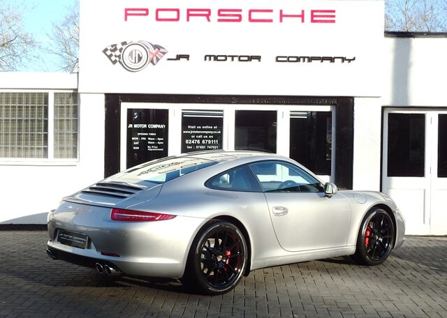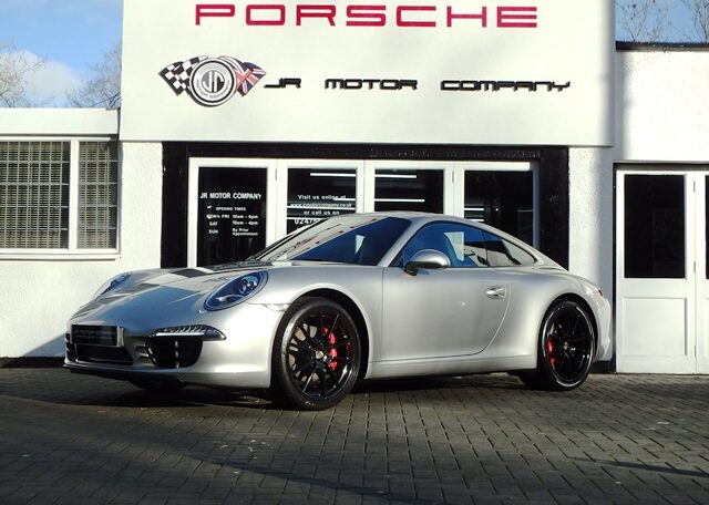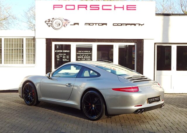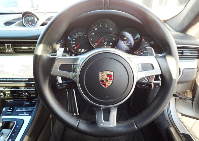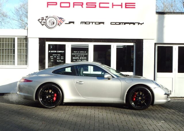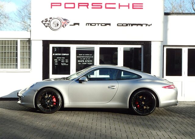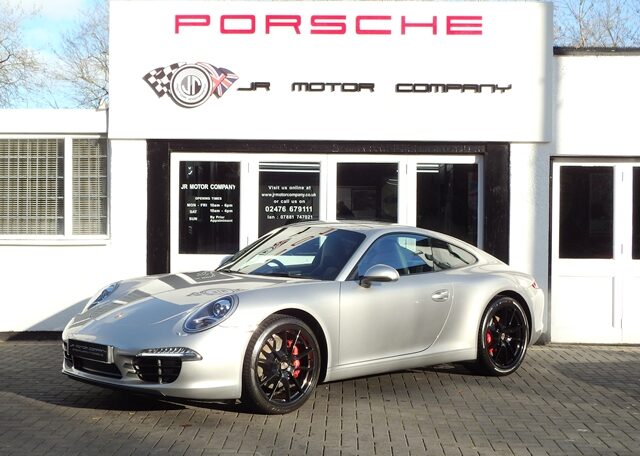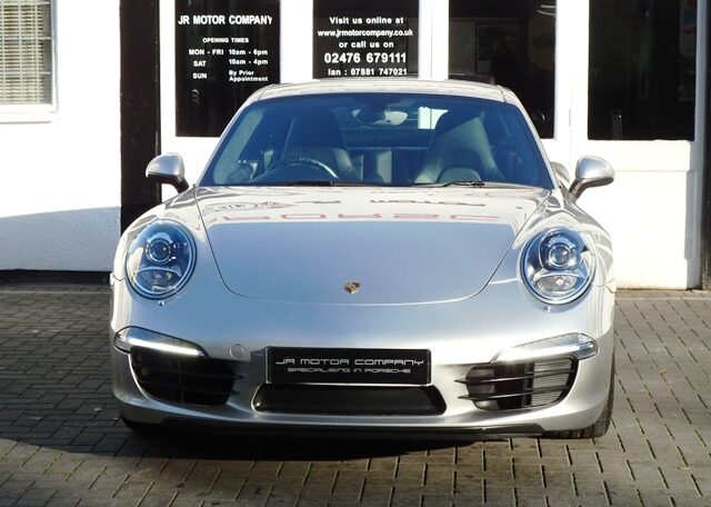 Cars like this dont come around too often! This is a huge specification 991 3.4 Carrera 2 PDK Finished in Platinum Silver metallic paint with a huge list of factory fitted options which includes stunning Black extended leather trim to inc doors and dashboard,hardback heated Sports seats plus with Porsche crests embossed,electric tilt/slide sunroof,alcantara headlining,power steering plus,sport design smooth leather steering wheel with paddles,black dials,cruise control,Sport chrono package plus with sport and sport plus mode,(PDK) Porsche Doppelkupplung double clutch 7 speed gearbox,(PCM3.1) Porsche communications management touch screen extended satellite navigation with European function,Bluetooth,Telephone module linked with Bose sound package and USB audio interface for iPod and mp3 use,CD storage,(PSM) Porsche Stability Management,top tinted windscreen,(PVTS) Porsche vehicle tracking system,fully automated 2 zone climate controlled air conditioning,auto dimming interior and exterior mirrors with rain sensor,(PDLS) Porsche dynamic lighting system auto bi xenon headlights with wash,interior light design package,model designation 911,electric folding exterior mirrors,Porsche overmats,fully refurbished 20 inch Carrera S alloy wheels finished in gloss black with colour crested wheel centers wrapped in Pirelli P Zero N rated tyres together with 5mm wheel spacers and calipers finished in red,park assist rear and chrome Sports tailpipes to complete the massive package.This stunning 911 comes complete with a fully documented OPC Porsche plus Porsche specialist service record totalling 7 stamps together with all spare keys and handbook pack.A very unique 991 with Stunning looks and knockout specification at an incredible price!
