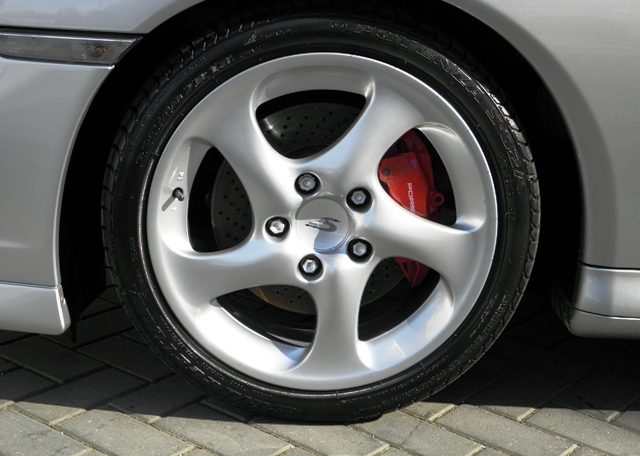 Porsche 911 Carrera 4S - Carrera in Turbo-Look The Carrera 4S leaves no doubt as to what inspired its design: the 911 Turbo. The rear fenders of the Carrera 4S increase its width by 60 millimetres compared with the 996 model series 911 Carrera, creating ample space for the standard 18-inch alloy wheels in Turbo design with 295/30 ZR 18 tyres. The Turbo model’s typical air intakes in the broad fenders, however, are lacking. These large side openings are not needed, as the engine compartment has no charge-air intercoolers demanding an abundant supply of fresh air. This, along with other aerodynamic measures, results in the improved aerodynamic drag coefficient of Cd = 0.30.