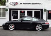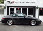 Absolutely stunning and now getting hard to find with such spec,mileage and pedigree 911 996 Carrera 4S Manual 6 speed finished in Basalt Black metallic paint and complete with a huge list of factory fitted options which includes full black extended smooth natural leather interior trim including dashboard and door panels with electric memory seats,heated seats,3 spoke thicker sports leather steering wheel,alcantara roof lining,black dials,electric sunroof,Alpine CDE136BT CD player with DAB DAB+ Bluetooth USB MP3 IPhone and Ipod compatible linked with Porsche sound package and CD storage,(PSM) Porsche Stability management,fully refurbished 18″ turbo alloy wheels wrapped in n rated Michelin tyres with new 4s centers,xenon headlights,windscreen with green shade band,red brake calipers,Porsche overmats,rear wiper,climate air conditioning,rear S badge in red,rear wiper and stainless door entry guards to complete a very special 911.This stunning C4S comes complete with a fully documented OPC Porsche plus Porsche specialist service record totaling 12 stamps just completed by ourselves along with a new clutch kit and uprated EPS IMS bearing kit fitted together with all spare keys and handbook pack.An outstanding appreciating 911 which are increasing in value making a great investment!