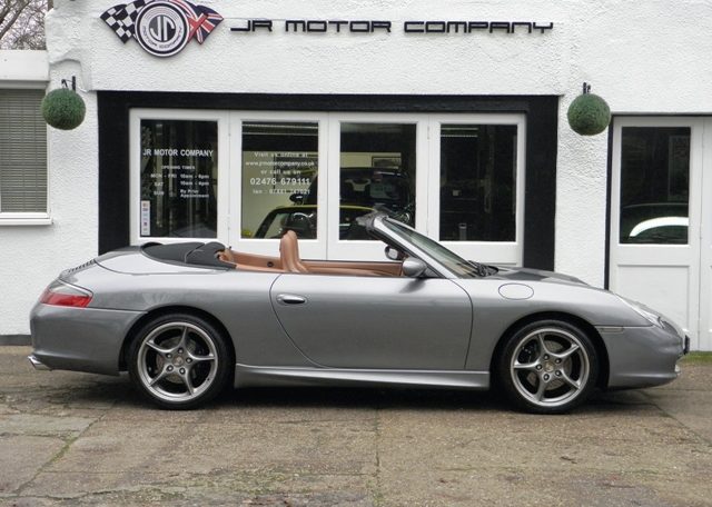 Absolutely stunning and one of a kind with such spec,low mileage and pedigree 911 996 Carrera 2 Tiptronic S Cabriolet finished in Seal Grey metallic paint and complete with a unique list of factory options which includes Full Natural extended smooth leather interior trim including dashboard and door panels plus ignition lock,center console,steering column,Hardback sports seats with Porsche crest embossed,center glove box in leather with Porsche crest embossed,3 spoke thicker sports leather steering wheel with tiptronic controls,individual aluminum pack including center console,vents,handbrake and gearshift with Porsche crest,instrument surround and instruments,electric black hood,Porsche overmats,side skirts,stainless door entry guards with logo,PCM 2 Sat nav system with cd player telephone module,sound package,cd storage,(PSM) Porsche Stability management,18 inch diamond cut Carrera classic alloys finished in body color with color crested wheel centers,(XLF) Porsche Switchable Sports Exhaust with chrome sports tailpipes,Xenon headlights,windscreen with green shade band,(PVTS) Porsche vehicle tracking system and climate air conditioning to complete a very special 911.This stunning 996 comes complete with a fully documented OPC plus specialist service record totaling 13 stamps just completed by ourselves together with all spare keys and handbook pack previously sold twice and serviced by ourselves.This is a very special unique 996 that will increase in value and become very collectable!