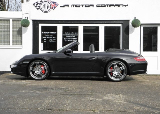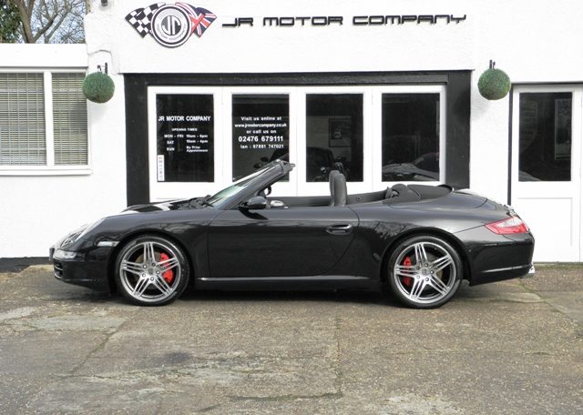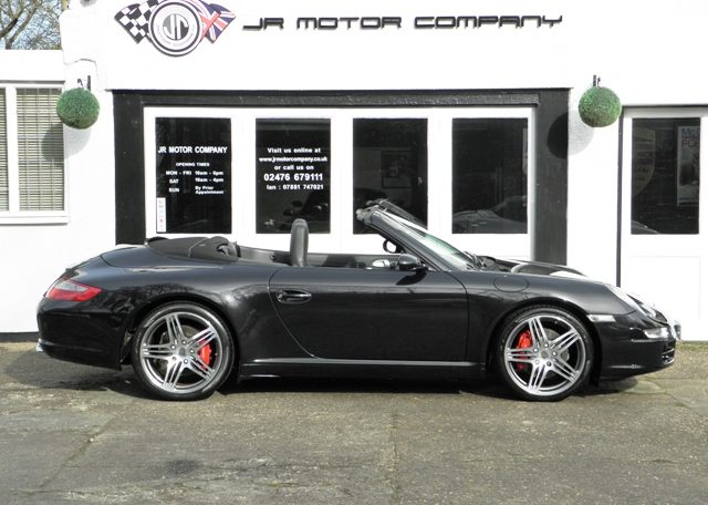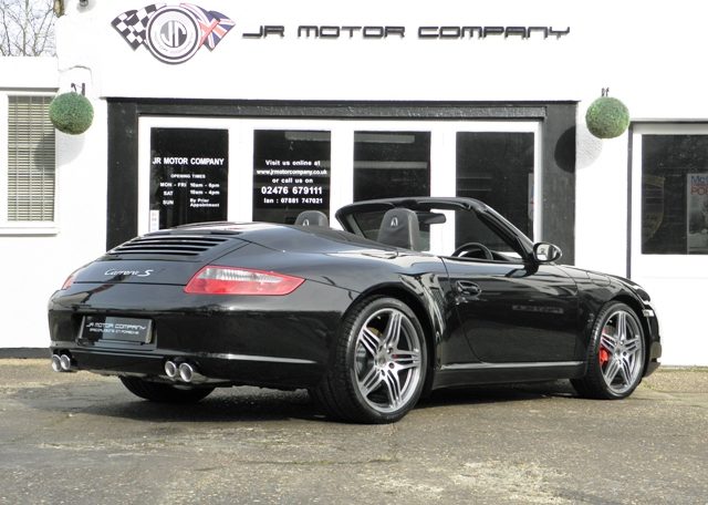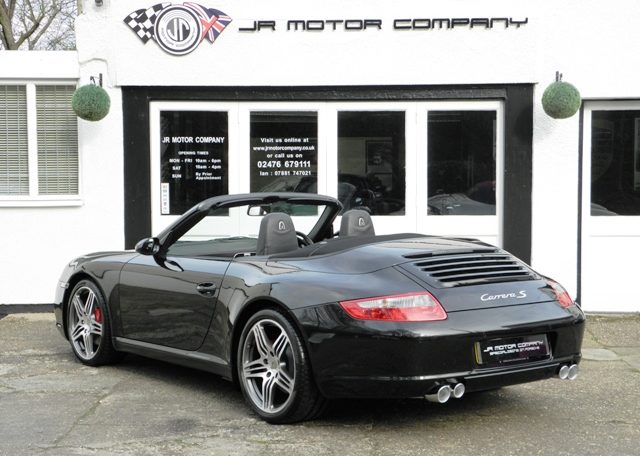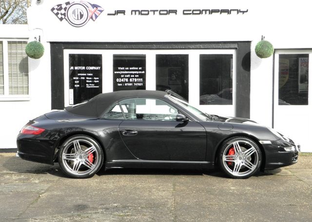 This really is one to own.A Stunning condition and huge specification 911 997 2S Cabriolet Manual finished in Basalt Black metallic paint with a huge list of factory fitted options which includes full extended Black smooth leather trim,12 point adaptive electric memory seats with heating and embossed Porsche crests,3 spoke sports leather steering wheel,Black electric hood,Sport shifter with aluminum gearshift,aluminum look painted center console,silver dials,door entry guards in stainless steel,(PCM 2.1) Porsche communications management with European satellite navigation,telephone module and cd player together with cdc4 changer linked with Bose sound package,Parrot Bluetooth,(PSM) Porsche stability management,(PASM) Porsche active suspension management,fully refurbished 19 inch Turbo alloy wheels with color crested centers wrapped in Pirelli P Zero tyres,red brake calipers,rear park assist,xenon headlights with wash,top tint windscreen,Porsche over mats and the all important option of (PSE) Porsche sports exhaust with chrome sports tailpipes to complete this Knockout 997.This outstanding car has been lovingly kept and maintained and has a fully documented and detailed OPC Porsche plus specialist service record just completed by ourselves,together with all handbook pack and spare keys.Previously sold by ourselves this 911 is a pleasure for us to sell and with this spec and mileage wont last long!