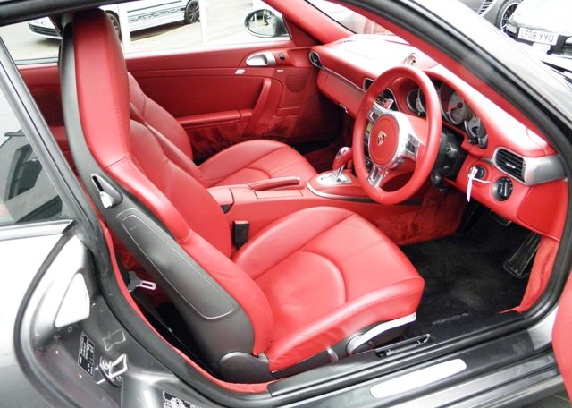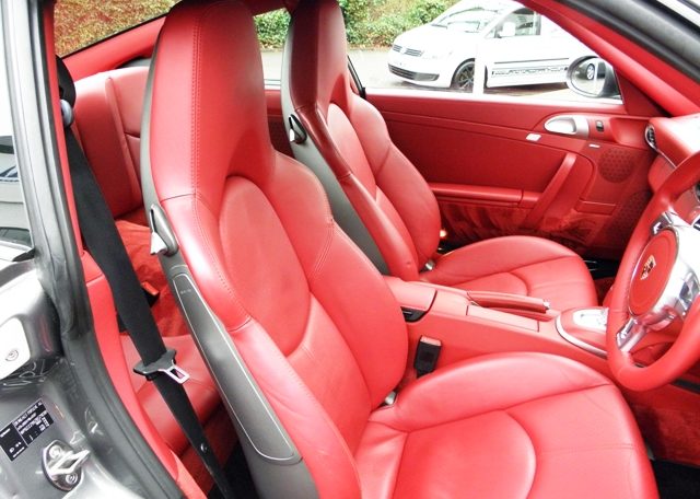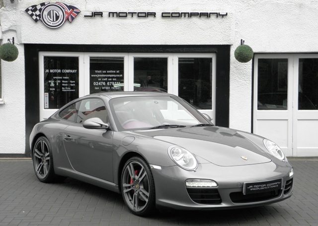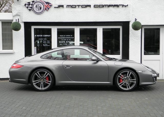 Wow cars like this don’t come around very often!This is a huge specification 997 3.8 2S Generation 2 PDK Finished in Meteor Grey metallic paint with a huge rare list of factory fitted options which includes Carrera Red smooth leather extended leather to inc doors and dashboard,Hardback heated sports seats,Sport Design three spoke smooth leather steering wheel with paddles,alcantara headlining in black,(PDK) Porsche Doppelkupplung double clutch 7 speed gearbox,cruise control,(PCM3) Porsche communications management touch screen extended satellite navigation with extended European function,Bluetooth,Telephone module and CD player linked with Bose surround sound package and USB audio interface for iPod and mp3 use,CD storage,(PSM) Porsche Stability Management,top tinted windscreen,fully automated climate controlled air conditioning,PDC,bi xenon headlights with wash,black Porsche overmats,19″ Turbo II alloy wheels with crested centers wrapped in Bridgestone N rated tyres,silver dials,(PASM) Porsche Active Suspension Management,stopwatch with silver face and the rare options of Sport chrono package plus with variable sport control together with (PSE) Porsche switchable sports exhaust to complete the package and one outstanding 997.This stunning 911 comes complete with a fully documented OPC Porsche service record totaling 5 stamps currently and since new covered by Porsche warranty together with all spare keys and handbook pack.A very unique 911 with Stunning looks,awesome sound and knockout specification!