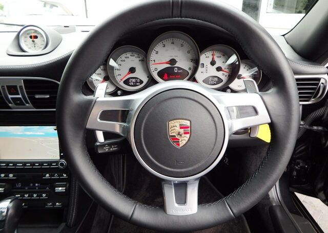 This is really a one off opportunity to buy a special 911 with only 29000 Miles!This is a huge specification 997 3.8 Carrera 2S Generation 2 PDK Finished in Basalt Black metallic paint with a huge list of factory fitted options which includes black smooth leather extended leather to inc doors and dashboard,hardback heated sports seats,Sport Design smooth leather steering wheel with paddles,alcantara headlining,(PDK) Porsche Doppelkupplung double clutch 7 speed gearbox,(PCM3) Porsche communications management touch screen extended satellite navigation with extended European function,Bluetooth,Telephone module and CD player linked with Bose sound package and USB audio interface for iPod and mp3 use,CD storage,(PSM) Porsche Stability Management,top tinted windscreen,fully automated climate controlled air conditioning,PDC,bi xenon headlights with cleaning system,daytime running lights,Porsche overmats,fully refurbished19 inch Carrera S II alloy wheels with colour crested centers wrapped in Pirelli P Zero N rated tyres,silver dials,(PASM) Porsche Active Suspension Management and the rare options of Sport chrono package plus with silver faced stopwatch and variable sport control inc sport and sport plus buttons to complete the package and one outstanding 997.This stunning 911 comes complete with a fully documented OPC Porsche plus specialist service Portfolio totaling 6 stamps together with all spare keys and handbook pack.A very unique 911 with Stunning looks,awesome sound and knockout specification.
