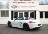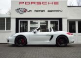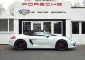 Cars like this don’t come around very often!This is a huge specification one of a kind Boxster 2.7 981 PDK Finished in Pure White paint with a huge list of factory fitted options which includes Black smooth leather heated seats,Sport Design smooth leather steering wheel with paddle shifters,(PDK) Porsche Doppelkupplung double clutch 7 speed gearbox,dual zone climate controlled air conditioning,silver dials,(PSM) Porsche Stability Management,Sport mode,power steering plus,(PCM3) Porsche communications management Satelite navigation inc telephone module,Bluetooth interface and USB multimedia interface linked with Porsche sound package plus,top tinted windscreen,Auto dimm interior mirror with rain sensor,auto light function,bi xenon headlights,front and rear ultrasonic park assist,Porsche over mats,wind deflector with fly catchers,rollover bar finished in bodycolour,deletion of model designation,sports exhaust tailpipes in black,black hood,red calipers,fully refurbished 20 inch Carrera S alloy wheels finished in satin black with new OEM colour crested centers wrapped in Pirelli P Zero N rated tyres (alternative wheel options available upon request) to complete the package.Previously supplied by us this stunning Boxster comes complete with a fully documented OPC Porsche center plus specialist service record totaling 7 stamps recently completed by ourselves together with all spare keys and handbook pack.Stunning looks with a huge specification and impeccable service portfolio!