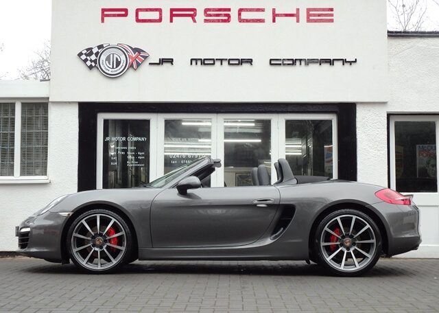 This is a huge specification Boxster 2.7 981 PDK Finished in Agate Grey metallic paint with a great list of factory fitted options which includes Black smooth heated seats,black dials,3 spoke smooth leather Sport design steering wheel with paddles,air conditioning,(PSM) Porsche Stability Management,Sport mode,cruise control,(PCM3.1) Porsche communications management Satellite navigation with CD player,Bluetooth,mobile Phone prep and universal audio interface linked with Porsche sound package plus,top tinted windscreen,Auto headlights,park assist front and rear,Porsche overmats,mesh wind deflector with flycatchers,red brake calipers,black hood,sports exhaust tailpipes in black and fully refurbished 20 inch Carrera classic alloy wheels with new oem colour crested centers wrapped in Pirelli P Zero N rated tyres to complete the package and huge list of options to make one very special 981.Previously sold by us this stunning Boxster comes complete with a fully documented OPC Porsche center plus specialist service record just completed by ourselves totalling 7 stamps together with all spare keys and handbook pack.Stunning looks with a great specification,Outstanding!