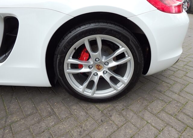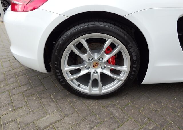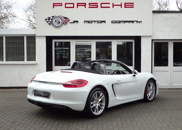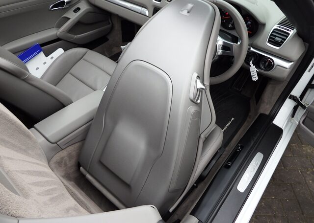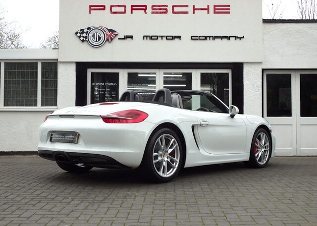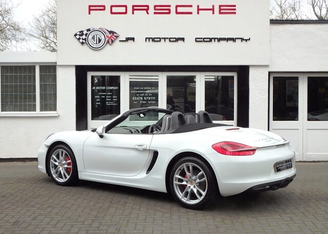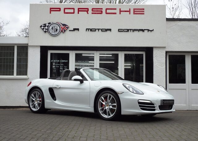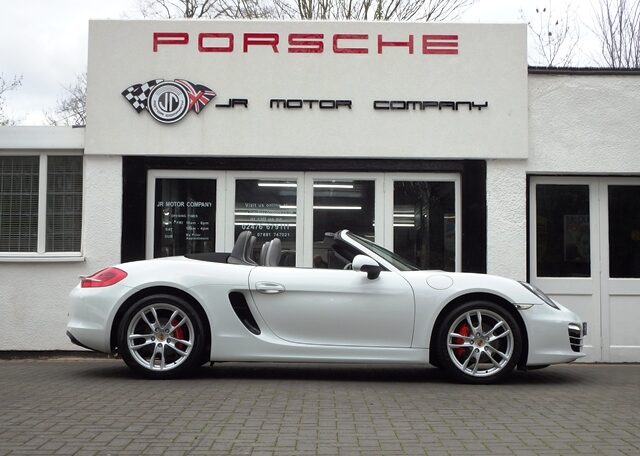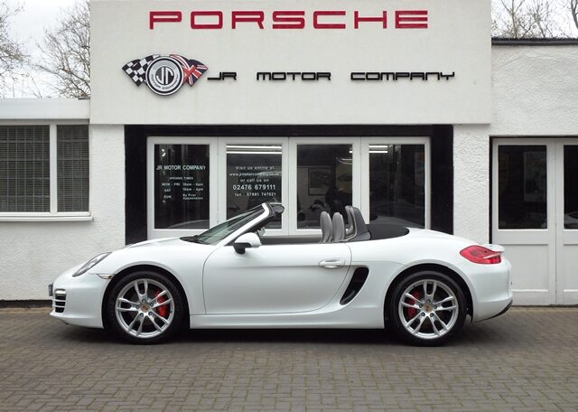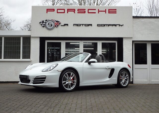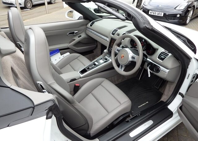 This is a great rare specification Boxster 2.7 981 PDK Finished in Pure White solid paint with a big list of factory fitted options which includes Platinum Grey smooth leather hardback heated sports seats,black dials,3 spoke smooth leather Sport Design steering wheel with paddles,air conditioning,light design package,(PSM) Porsche Stability Management,Sport mode,CDR30 CD player linked with Porsche sound package plus,top tinted windscreen,Auto headlights,auto dimming mirrors with rain sensor,park assist front and rear,Porsche overmats in black,mesh wind deflector with flycatchers,calipers finished in red,black hood and 19 inch Boxster S alloy wheels with colour crested centers wrapped in Goodyear Eagle F1 N rated tyres (alternative wheel options available upon request) to complete the package and great list of options to make one very special 981.This stunning Boxster comes complete with a fully documented OPC Porsche center plus specialist service record totaling 6 stamps together with all spare keys and handbook pack.Stunning looks with a nice specification,Outstanding!