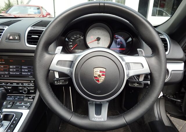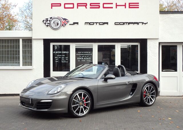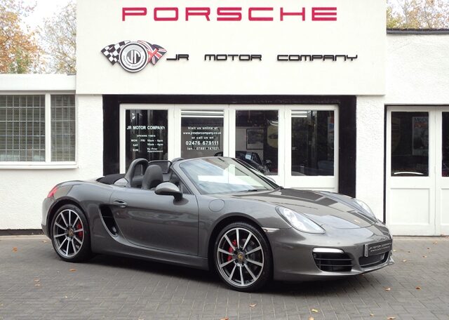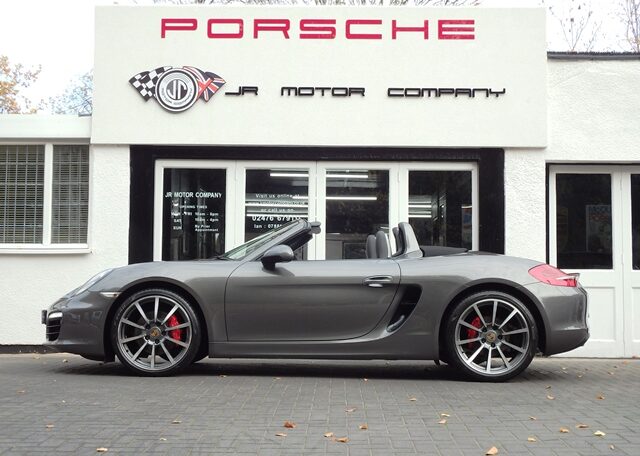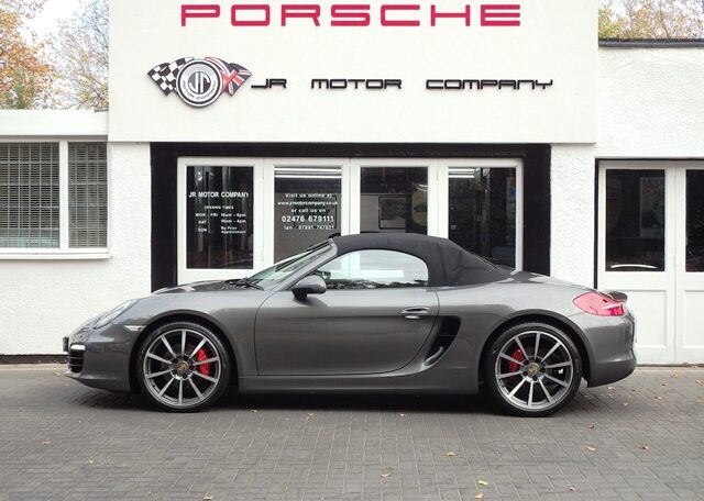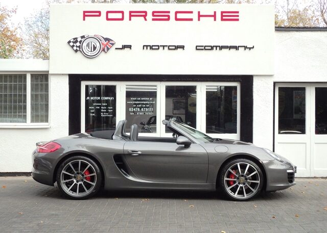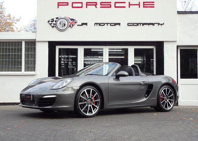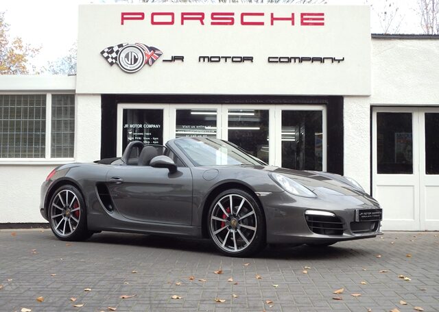 Wow this really is special! This is a rare specification Boxster 981 3.4 S PDK Finished in Agate Grey metallic paint with a huge list of factory fitted options which includes black smooth leather hardback heated sports seats,leather center box,power steering plus,black dials,3 spoke smooth leather Sport Design steering wheel with paddle shifters,air conditioning,cruise control,(PSM) Porsche Stability Management,Sport mode,CDR30 CD player with bluetooth,AUX interface linked with Porsche sound package plus,top tinted windscreen,Porsche overmats,mesh wind deflector with flycatchers,auto headlights,black power hood,ultrasonic park assist front and rear,rollover bar finished in bodycolour,sports tailpipes in black and fully refurbished 20 inch Carrera classic alloy wheels with new oem colour crested centers wrapped in Pirelli P Zero N rated tyres with calipers in finished in red to complete the package and a very special 981 S.This stunning Boxster comes complete with a fully documented OPC Porsche plus specialist service record totalling 5 stamps and just completed by ourselves together with all spare keys and handbook pack.Stunning looks with a huge specification,Outstanding!