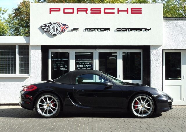 This is a great specification Boxster 3.4 S 981 PDK Finished in Basalt Black metallic paint with a huge list of factory fitted options which includes Black smooth leather heated seats,leather center box and door handles,Sport Design smooth leather steering wheel with paddle shifters,power steering plus,(PDK) Porsche Doppelkupplung double clutch 7 speed gearbox,dual zone climate controlled air conditioning,black dials,(PSM) Porsche Stability Management,sport mode,CDR30 media system inc Bluetooth interface and aux interface and the added bonus of a Carplay module installed,(PVTS) Porsche vehicle tracking system,top tinted windscreen,auto light function,bi xenon headlights,rear ultrasonic park assist,Porsche over mats,wind deflector with fly catchers,sports exhaust tailpipes in black,black hood,red calipers,fully refurbished 20 inch Carrera S alloy wheels with colour crested centers wrapped in Pirelli P Zero N rated tyres to complete the package.This stunning Boxster S comes complete with a fully documented OPC Porsche plus specialist service record totaling 7 stamps together with all spare keys and handbook pack.Stunning looks with a huge specification and great service portfolio!