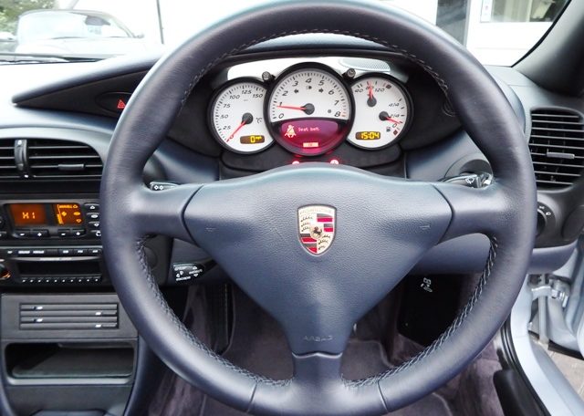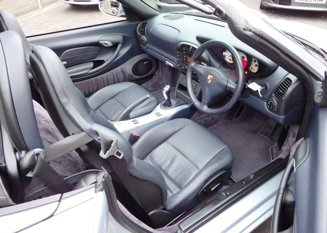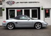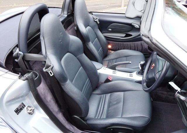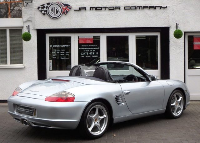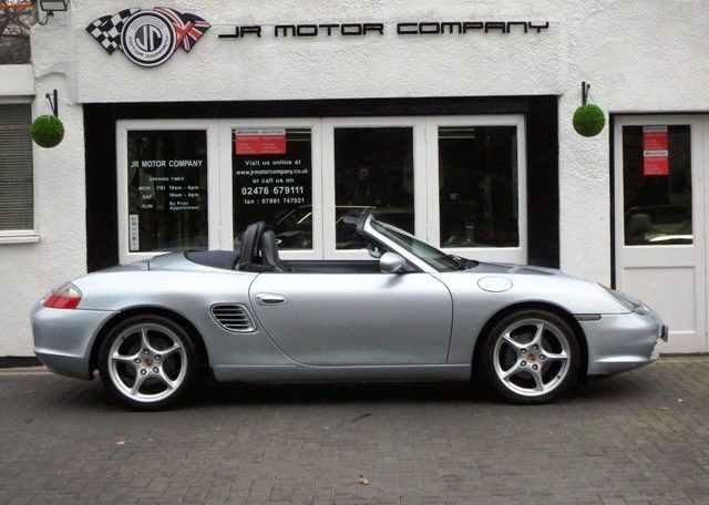 A very special Boxster finished in rare Polar Silver metallic Paint and complete with a great factory specification which includes Metropole blue hood,full Metropole blue smooth extended leather interior including doors and handbrake,hard back sports seats with Porsche crests embossed,smooth leather 3 spoke sports steering wheel,on board computer,alluminium instrument dials,center console finished in bodycolour,CDR23 CD player linked with Bose sound package and CDC4 multichanger along with CD storage pack,refurbished 18 inch Carrera 5 spoke alloy wheels with crested centres wrapped in Pirelli P Zero tyres,wind deflector with flycatchers,Porsche overmats,climate controlled air conditioning,top tint windscreen,litronic headlights and black dials to complete the look and high spec.This Boxster has been lovingly cared for and maintained and comes with a fully documented OPC Porsche plus Porsche specialist service record totaling 7 stamps and just completed by ourselves together with all spare keys and handbook pack.This really is a great value Porsche that will be a perfect investment for the new owner!