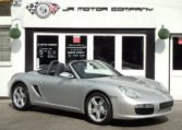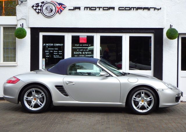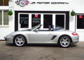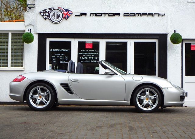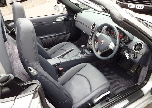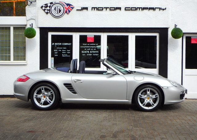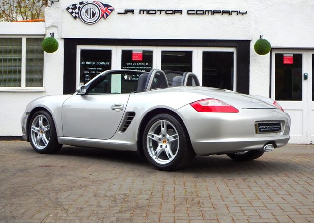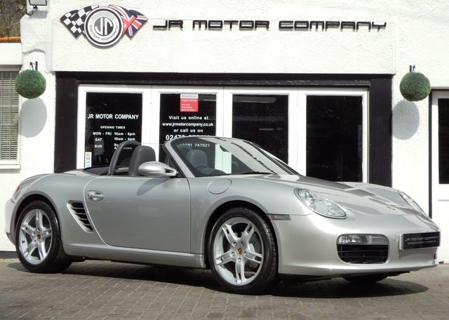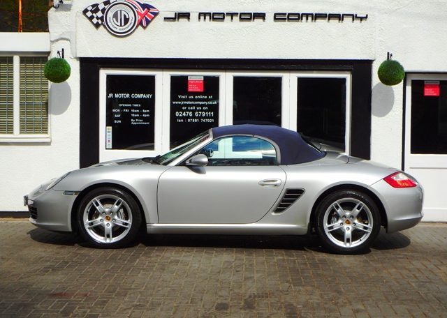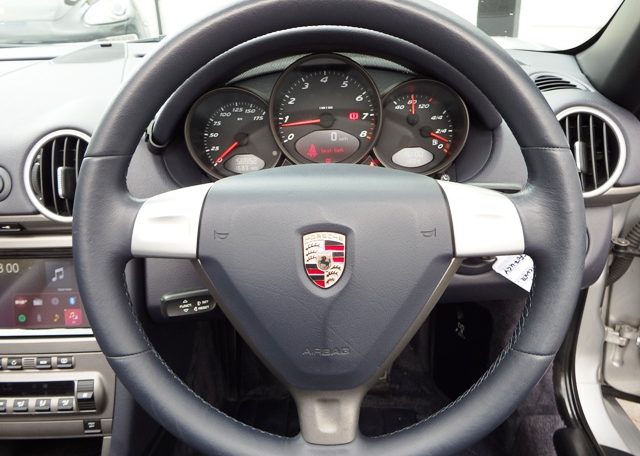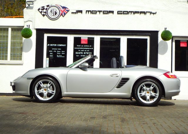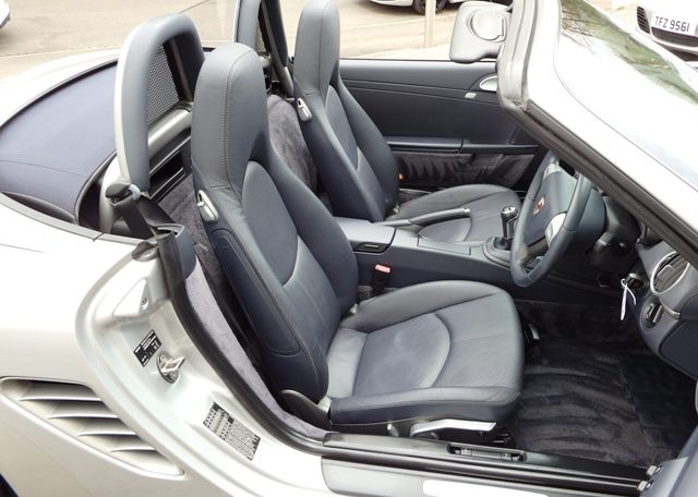 A stunning Boxster finished in Arctic Silver metallic paint. Presented in impeccable condition and with an extensive list of factory fitted options which includes Full Metropole blue smooth leather interior trim,smooth leather 3 spoke steering wheel,black dials,top tint windscreen,fully refurbished 18″ Boxster S alloy wheels with color crested centers wrapped in n rated Continental tyres,Pioneer AVH-A3100DAB Carplay system with Bluetooth,smartphone navigation,DAB,Spotify and usb audio interface linked with Porsche sound package plus with CD storage,New Porsche overmats,litronic headlights,(PSM) Porsche Stability Management,wind deflector with flycatchers,aluminum rollover bar and side vents,climate controlled air conditioning,extended storage and a Metropole blue hood to complete the package.This stunning Boxster has been lovingly kept and maintained and has a fully documented OPC Porsche plus specialist service record totaling 6 stamps,together with all handbook pack and spare keys.The car is a pleasure to sell and wont last long with this spec,pedigree and lovely color combination,fully prepared and ready to go!