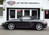 A stunning Boxster finished in Basalt Black metallic paint. Presented in impeccable condition and with an extensive list of factory fitted options which includes Full Black smooth leather interior trim,hardback sports seats,black dials,smooth leather steering wheel,top tint windscreen,fully refurbished 18 inch Boxster S alloy wheels with colour crested centers wrapped in Continental Sport Contact N rated Tyres,CDR24 CD player linked with Bose sound package,Porsche overmats,litronic headlights,(PSM) Porsche Stability Management,aluminum side vents and rollover bar,climate controlled air conditioning,extended storage and a black electric convertible hood to complete the package.This stunning Boxster has been lovingly kept and maintained and has an impeccable OPC Porsche plus specialist service record just completed by ourselves and totaling 7 stamps,together with all handbook pack and spare keys.The car is a pleasure to sell and wont last long with this spec,pedigree and low mileage,fully prepared and ready to go!