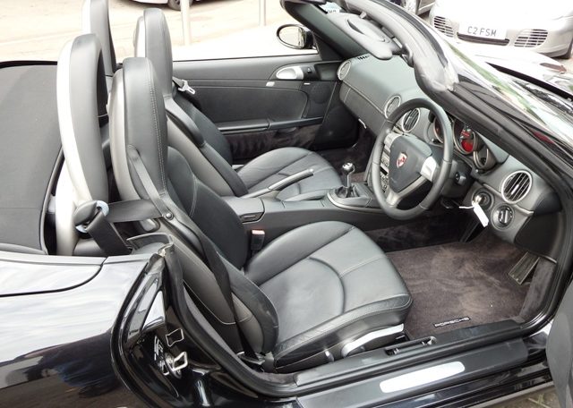 A stunning Boxster finished in Basalt Black metallic paint. Presented in impeccable condition and with an extensive list of factory fitted options which includes Full Black smooth leather interior trim,hardback sports seats,black dials,smooth leather steering wheel,top tint windscreen,fully refurbished 18 inch Boxster S alloy wheels with colour crested centers wrapped in Continental Sport Contact N rated Tyres,CDR24 CD player linked with Bose sound package,Porsche overmats,litronic headlights,(PSM) Porsche Stability Management,aluminum side vents and rollover bar,climate controlled air conditioning,extended storage and a black electric convertible hood to complete the package.This stunning Boxster has been lovingly kept and maintained and has an impeccable OPC Porsche plus specialist service record just completed by ourselves and totaling 7 stamps,together with all handbook pack and spare keys.The car is a pleasure to sell and wont last long with this spec,pedigree and low mileage,fully prepared and ready to go!