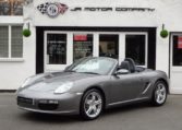 A stunning Boxster finished in Meteor Grey metallic paint. Presented in impeccable condition and with an extensive list of factory fitted options which includes Full Metropole blue smooth leather heated seats with Porsche crests embossed,leather center box with Porsche crest,smooth leather 3 spoke sports steering wheel,silver dials,silver seat belts,top tint windscreen,fully refurbished 18″ Boxster S alloy wheels with color crested centers wrapped in N rated Michelin Pilot Sport tyres,Pioneer AVIC-F9880DAB Carplay system with Bluetooth,smartphone navigation,DAB,Spotify and usb audio interface linked with Porsche sound package plus with CD storage,Porsche overmats,litronic headlights,(PSM) Porsche Stability Management,wind deflector with flycatchers,aluminum rollover bar and side vents,Polished Sports exhaust tailpipes,PDC,climate controlled air conditioning,extended storage and a Metropole blue hood to complete the package.This stunning Boxster has been lovingly kept and maintained and has a fully documented OPC Porsche plus specialist service record totaling 6 stamps just completed by ourselves,together with all handbook pack and spare keys.The car is a pleasure to sell and wont last long with this spec,pedigree and lovely color combination,fully prepared and ready to go!