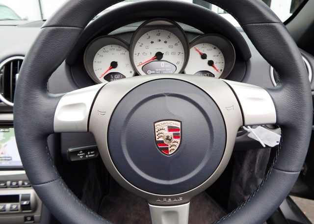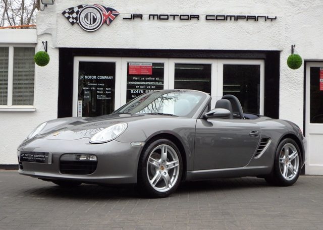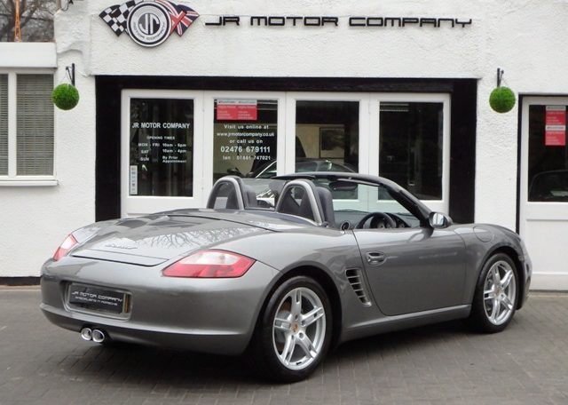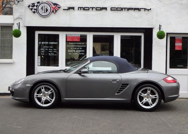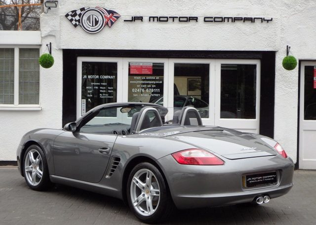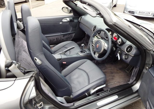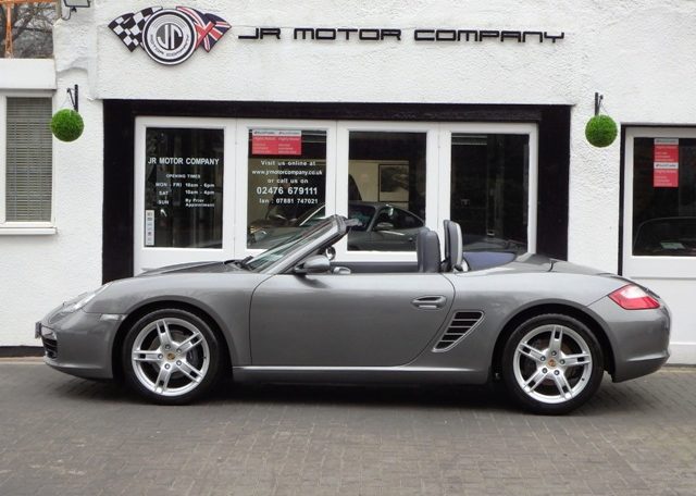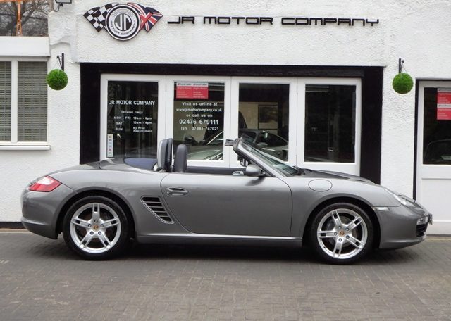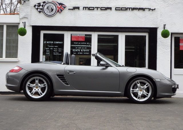 A stunning Boxster finished in Meteor Grey metallic paint. Presented in impeccable condition and with an extensive list of factory fitted options which includes Full Metropole blue smooth leather heated seats with Porsche crests embossed,leather center box with Porsche crest,smooth leather 3 spoke sports steering wheel,silver dials,silver seat belts,top tint windscreen,fully refurbished 18″ Boxster S alloy wheels with color crested centers wrapped in N rated Michelin Pilot Sport tyres,Pioneer AVIC-F9880DAB Carplay system with Bluetooth,smartphone navigation,DAB,Spotify and usb audio interface linked with Porsche sound package plus with CD storage,Porsche overmats,litronic headlights,(PSM) Porsche Stability Management,wind deflector with flycatchers,aluminum rollover bar and side vents,Polished Sports exhaust tailpipes,PDC,climate controlled air conditioning,extended storage and a Metropole blue hood to complete the package.This stunning Boxster has been lovingly kept and maintained and has a fully documented OPC Porsche plus specialist service record totaling 6 stamps just completed by ourselves,together with all handbook pack and spare keys.The car is a pleasure to sell and wont last long with this spec,pedigree and lovely color combination,fully prepared and ready to go!