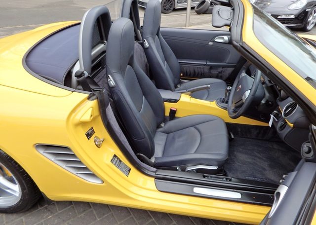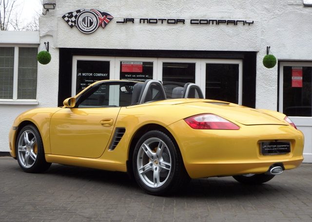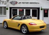 This is a very rare and special Boxster finished in special order Speed Yellow. Presented in stunning condition and with an extensive list of factory fitted options which includes metropole blue smooth leather trim,smooth leather steering wheel,center console and center dash trim finished in bodycolour,dials in yellow,top tint windscreen,fully refurbished 18 inch Boxster S alloy wheels with new crested center caps wrapped in Michelin Pilot Sport N rated tyres,Pioneer AVH-Z3200DAB Car play system with navigation,bluetooth,MP3,DAB along with Porsche sound package plus,Porsche overmats,litronic headlights,(PSM) Porsche Stability Management,wind deflector with flycatchers,extended storage,calipers in yellow,rollover bar and side vents in aluminum,auto climate controlled air conditioning and a contrasting metropole blue convertible hood to complete the look.Previously sold by us this stunning Boxster has been lovingly kept and maintained and has a fully documented OPC Porsche plus specialist service record just completed by ourselves totalling 5 stamps,together with all handbook pack and spare keys.The car is a pleasure for us to sell and wont last long with this spec and pedigree!