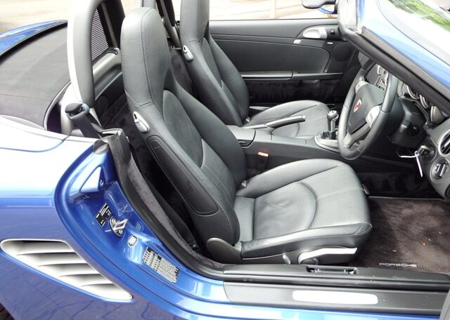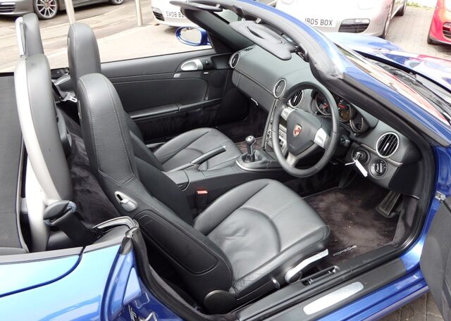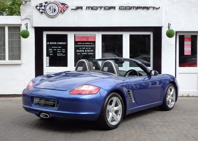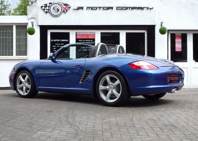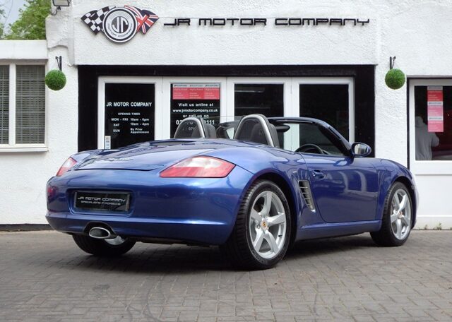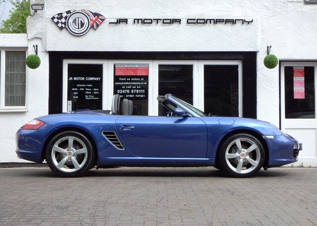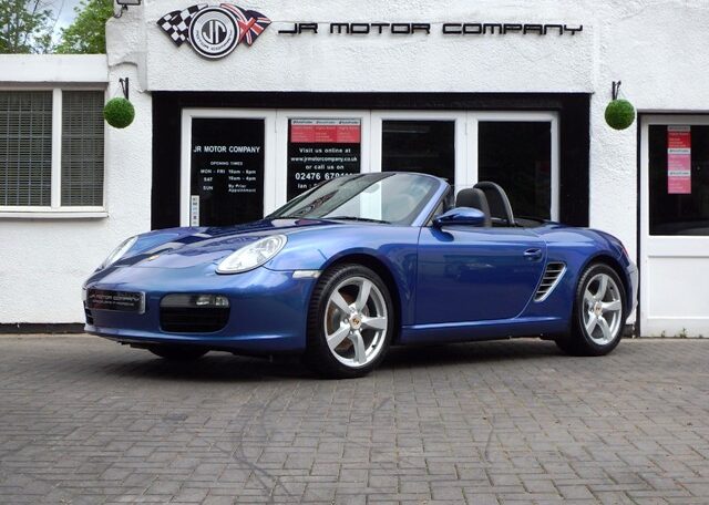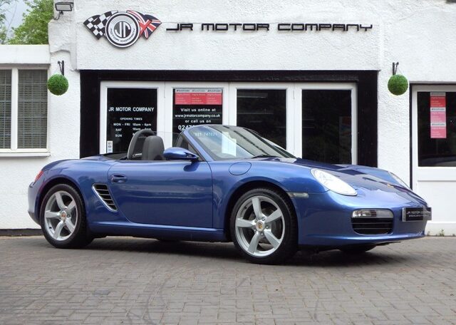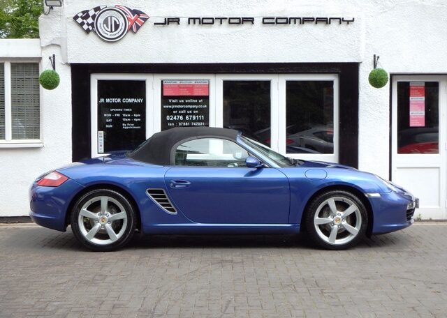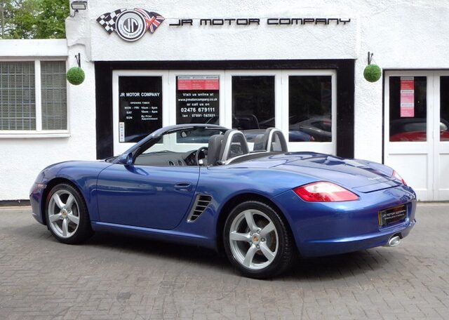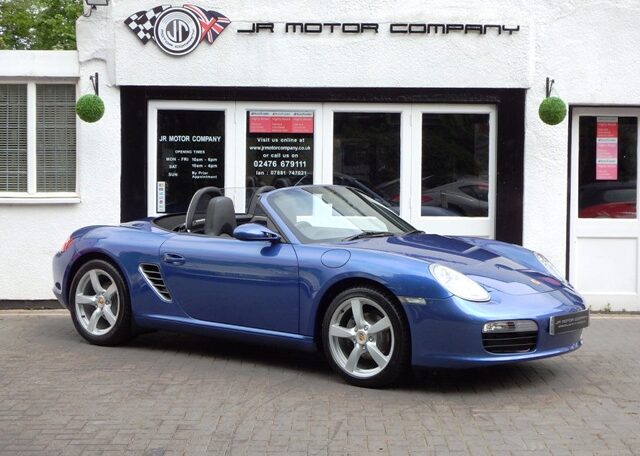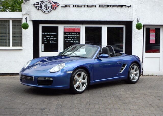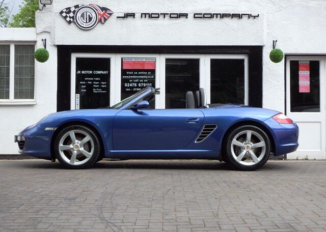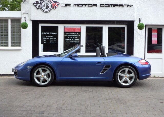 A stunning rare colour combination Boxster finished in Cobalt Blue metallic paint. Presented in impeccable condition and with an extensive list of factory fitted options which includes Full black smooth leather interior trim,smooth leather steering wheel,top tint windscreen,fully refurbished 18 inch Boxster/Cayman S alloy wheels with colour crested centers wrapped in Michelin Pilot Sport N rated Tyres,(PCM 2.1) Extended satellite navigation with telephone prep and CD player linked with CDC4 Autochanger and Bose sound package,Porsche overmats,litronic headlights,(PVTS) Porsche vehicle tracking system,(PSM) Porsche Stability Management,wind deflector with flycatchers,aluminum side vents and rollover bar,climate controlled air conditioning,black dials and a black convertible hood to complete the package.Previously sold by ourselves this stunning Boxster has been lovingly kept and maintained and has a fully documented OPC Porsche plus specialist service record just completed by ourselves totalling 7 stamps,together with all handbook pack and spare keys.The car is a pleasure to sell and wont last long with this spec,pedigree and rare colour combination,fully prepared and ready to go!