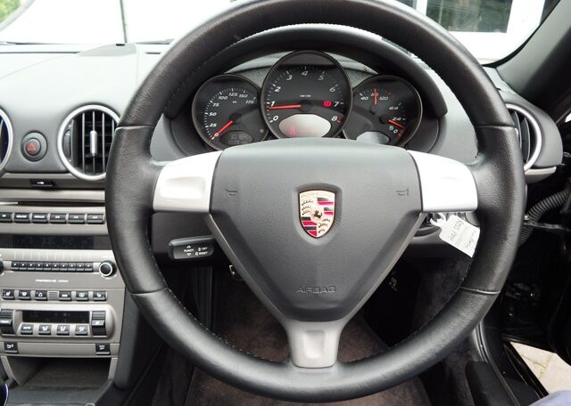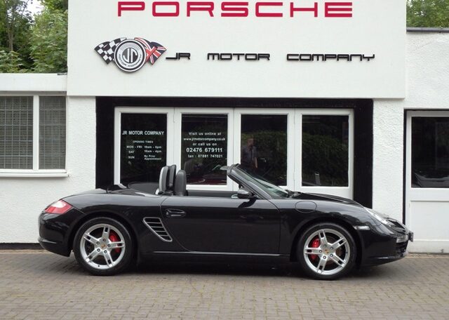 A stunning one of a kind rare low mileage Boxster finished in Basalt Black metallic paint. Presented in impeccable condition and with an extensive list of factory fitted options which includes Full Black smooth leather interior trim,heated seats,smooth leather steering wheel,top tint windscreen,fully refurbished 18 inch Boxster S alloy wheels with colour crested centers wrapped in Michelin Pilot Sport N rated Tyres,calipers finished in red,CDR24 CD player linked with CDC4 Autochanger and Bose sound package,Porsche overmats,Bi xenon headlights with wash,(PSM) Porsche Stability Management,wind deflector with flycatchers,aluminum side vents and rollover bar,climate controlled air conditioning,PDC,auto dimm interior mirrors with rain sensor,(PVTS) Porsche vehicle tracking system,black dials and a black electric convertible hood to complete the package. Previously sold by ourselves this stunning Boxster has been lovingly kept and maintained and has an impeccable OPC Porsche service record totalling 6 stamps along with 2 stamps by ourselves together with all handbook pack and spare keys.The car is a pleasure to sell and wont last long with this spec,pedigree and low mileage,fully prepared and ready to go!