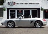 This is a very unique and special one of a kind Boxster Sport Edition 6 speed finished in Arctic Silver metallic paint in stunning condition and with an extensive list of factory fitted options which includes very rare Sport Design exterior Package,full black leather trim with heated seats,silver/grey seat belts,smooth leather sports steering wheel,CDR24 CD Player linked with Porsche sound package and CD storage,black dials,top tint windscreen,fully refurbished 18″ Boxster S alloy wheels with colour crested wheel centers wrapped in Continental n rated tyres,Porsche overmats,bi xenon headlights with wash,(PSM) Porsche Stability Management,(PASM) Porsche active suspension management,climate controlled air conditioning,stainless steel door entry guards,sports exhaust tailpipes,aluminum side vents,rollover bar in Arctic Silver,wind deflector with flycatchers and a Black convertible hood to complete a very special sport edition.This stunning Boxster has been lovingly kept and maintained and has a fully documented OPC Porsche plus specialist service record totaling 6 stamps together with handbook pack and spare keys.Previously sold by ourselves the car is a pleasure for us to sell and in outstanding condition.Stand out with this unique two owner Boxster!