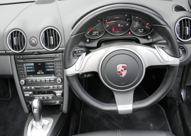 Cars like this don’t come around very often!This is a huge specification Boxster 2.9 Generation 2 PDK Finished in Basalt Black metallic paint with a great list of factory fitted options which includes Black smooth leather heated seats,(PDK) Porsche Doppelkupplung double clutch 7 speed gearbox,three spoke smooth leather sports steering wheel with tiptronic controls,CDR30 CD player,Bluetooth linked with A.S.K sound package and universal multimedia interface,cd storage,(PSM)Porsche Stability Management,top tinted windscreen,climate controlled air conditioning,black dials,PDC,Litronic headlights,(PVTS) Porsche vehicle tracking system,Porsche over mats,wind deflector with flycatchers,aluminum rollover bar and side vents,black hood and fully refurbished 18 inch Boxster S alloy wheels with color crested centers wrapped in Bridgestone tyres to complete the package and over £8k in options.This stunning Boxster comes complete with a fully documented OPC Porsche plus specialist service record together with all spare keys and handbook pack.Stunning looks and a one off specification!