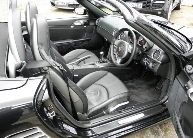 The perfect spec and color combination Boxster S now becoming hard to find! This is a very rare and special Boxster 3.2 S manual finished in Basalt Black metallic paint in outstanding condition and with an extensive list of factory fitted options which includes full black smooth extended leather trim including door panels and dash,hardback sports seats,3 spoke Sports smooth leather steering wheel,silver dials,fully refurbished 19″ Sport Design alloy wheels with color crested wheel centers wrapped in Michelin Pilot sport tires,cdr24 CD player with CD storage,CDC4 Multichanger and Bose sound package,black Porsche overmats,(PSM) Porsche Stability Management,(PASM) Porsche Active Suspension Management,climate controlled air conditioning,wind deflector with fly catchers,aluminum side vents and rollover bar,red brake calipers,top tint windscreen,litronic headlamps with wash and a Black electric convertible roof to complete the look.This stunning Boxster S has been lovingly kept and maintained and has a fully documented and detailed immaculate OPC Porsche service record together with a service just completed by ourselves along with handbook pack and all spare keys.This is a rare and outstanding Boxster!