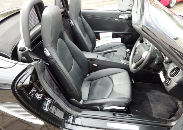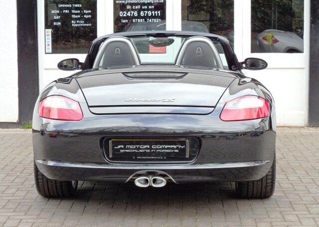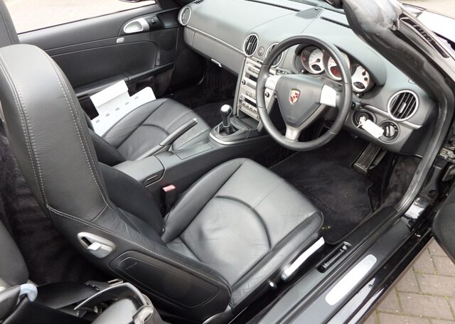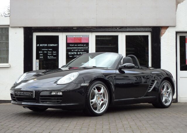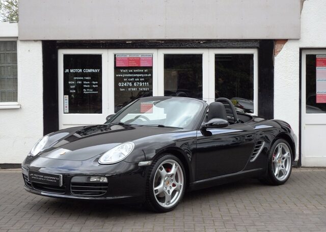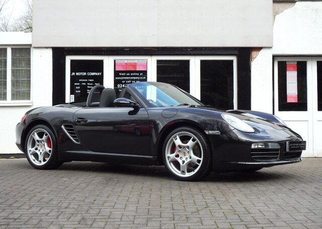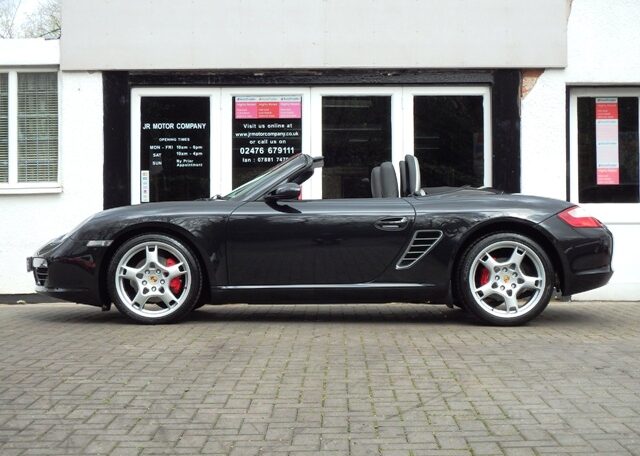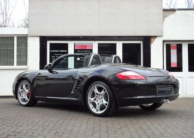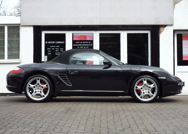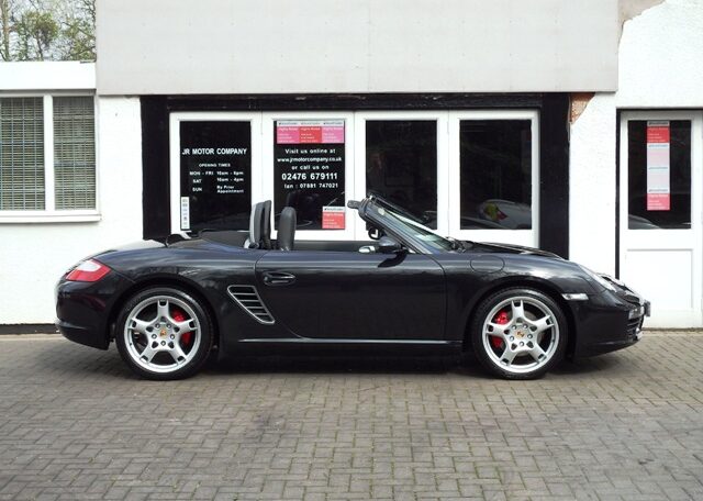 The perfect spec and colour combination Boxster S now becoming hard to find!This is a the perfect colour combination Boxster 3.2 S manual finished in Basalt Black metallic paint in outstanding condition and with an extensive list of factory fitted options which includes full black smooth leather seats with Porsche crests embossed,3 spoke smooth leather steering wheel,silver dials,fully refurbished 19 inch Carrera S alloy wheels with colour crested wheel centres wrapped in Goodyear Eagle F1 N rated tyres,calipers in red,CDR24 CD player with CD storage and linked with Porsche sound package plus,Porsche overmats,(PSM) Porsche Stability Management,climate controlled air conditioning,wind deflector with fly catchers,auto dimming exterior and interior mirrors with rain sensor,heated mirrors,alluminium side vents and rollover bar,extended storage,top tint windscreen,litronic headlamps and a Black electric convertible roof to complete the look.This stunning Boxster S has been loveingly kept and maintained and has a fully documented OPC Porsche plus specialist service record totaling 8 stamps and just completed by ourselves together with handbook pack.This is a pleasure for us to sell and wont last long at this value!