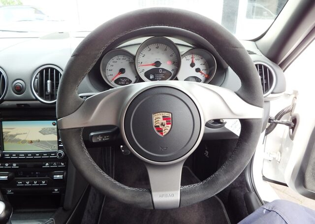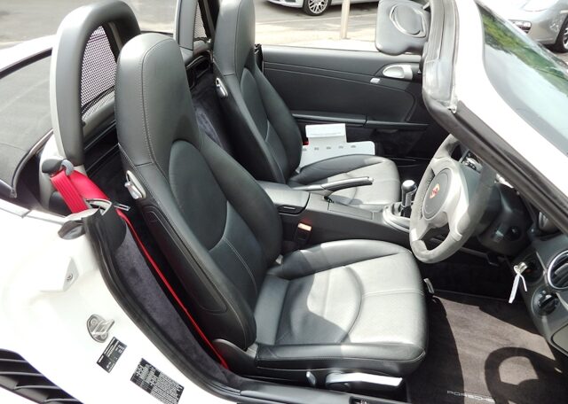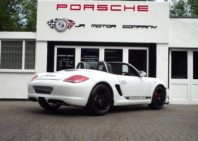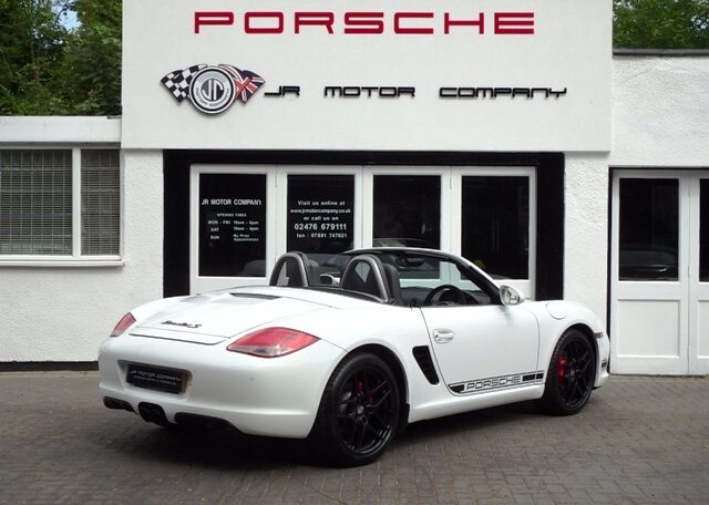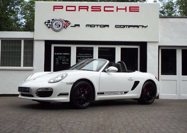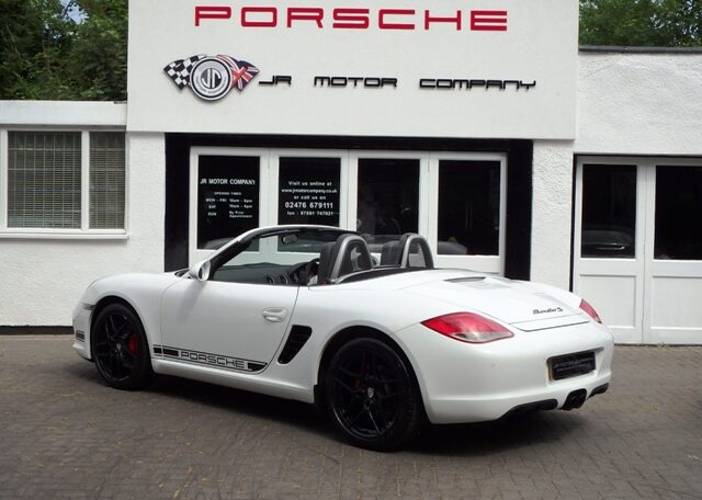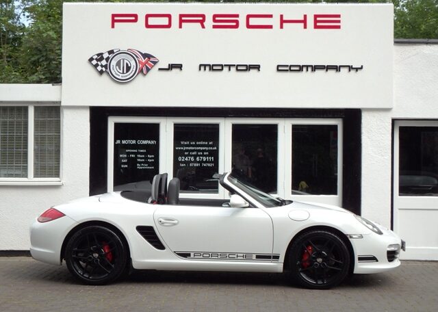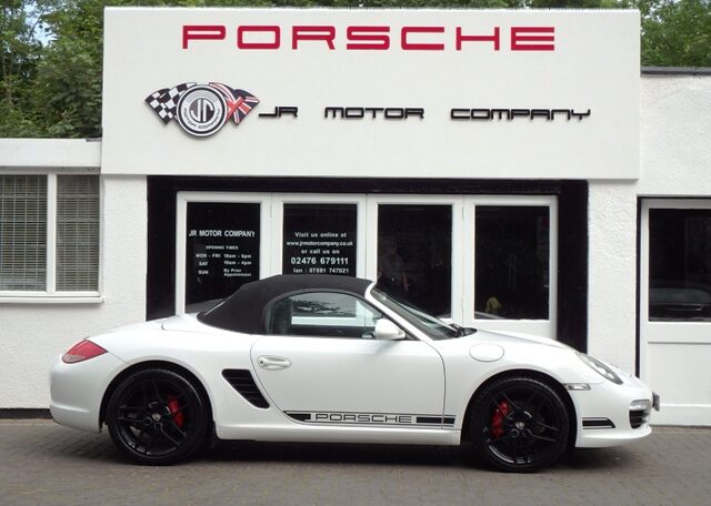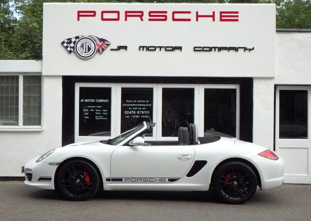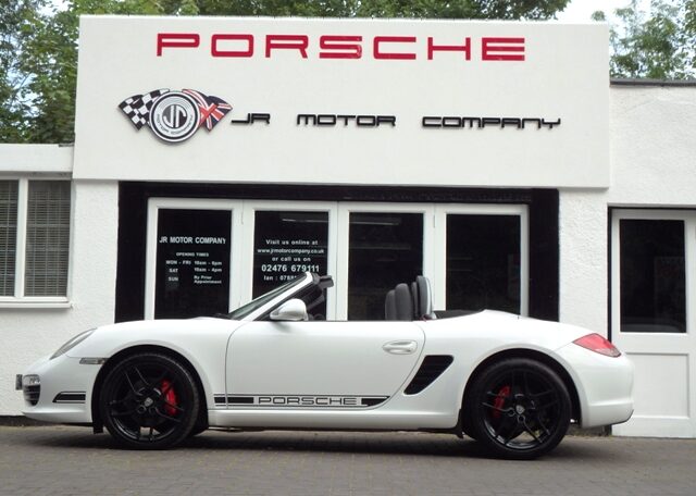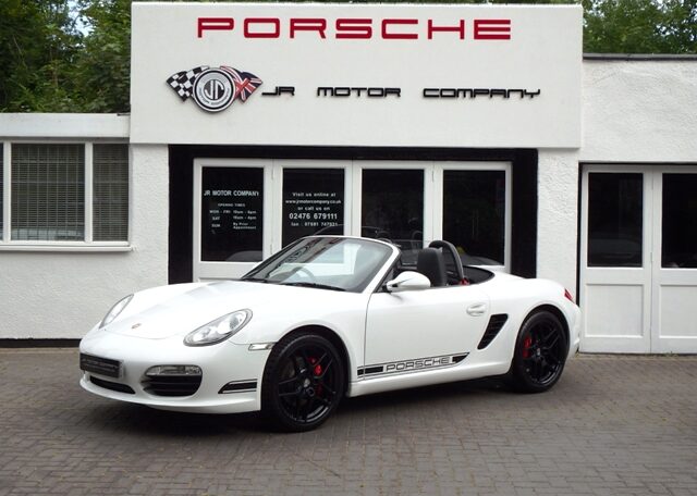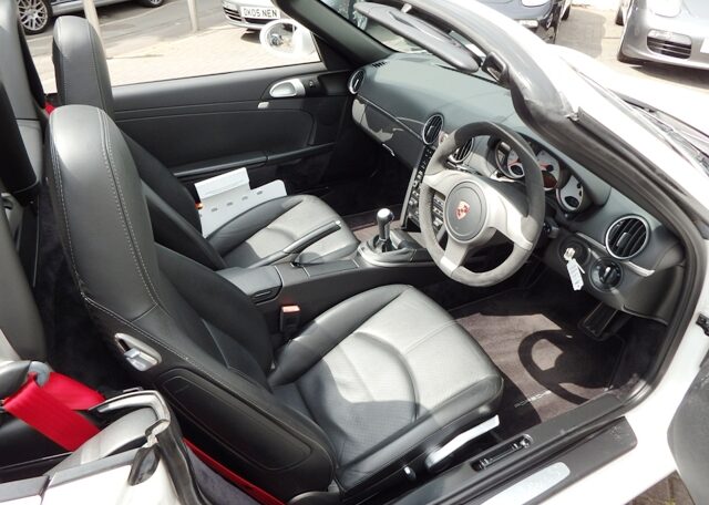 Cars like this dont come around very often! This is a huge specification one of a kind Boxster 3.4 S Generation 2 Manual Finished in Carrara White paint with a huge list of factory fitted options which includes full Black smooth leather heated seats,Alcantara heated sports steering wheel,seat belts in guards red,wind deflector and flycatchers,side vents in satin black,alluminium rollover bar,silver dials,(PCM3) Porsche communications management touch screen extended satellite navigation with European function,Bluetooth,Telephone module and CD player linked with Porsche sound package plus and USB audio interface for iPod and mp3 use,CD storage,(PSM) Porsche Stability Management,extended storage,top tinted windscreen,climate controlled air conditioning,bi xenon headlights,Porsche over mats in black,sports exhaust twin tailpipes in satin black,Black hood,PDC,rear badge finished in satin black,Porsche side decals in black,fully refurbished 19 inch Carrera S alloy wheels finished in Satin black with new colour crested centers wrapped in Michelin Pilot Sport N rated tyres to complete the package.Previously sold by ourselves this unique Boxster S comes complete with a fully documented OPC Porsche plus specialist service record totaling 8 stamps just completed by ourselves together with all spare keys and handbook pack.Stunning looks and a one off specification which is extremely striking!