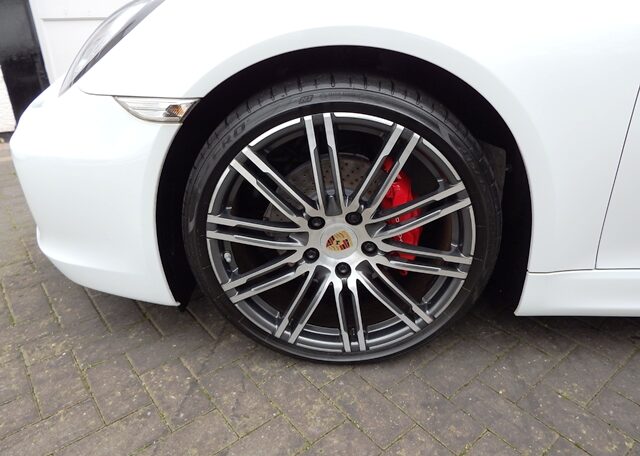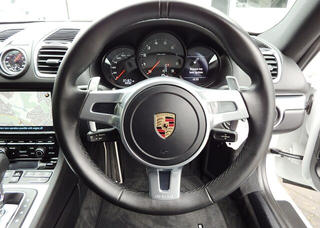 This is a Huge specification stunning Cayman 2.7 981 PDK Finished in Pure White paint with a huge list of factory fitted options which includes Black smooth leather heated seats,black dials,3 spoke smooth leather Sport design steering wheel with paddles,air conditioning,cruise control,light design package,alluminium interior package,(PSM) Porsche Stability Management,Sport mode,(PCM3.1) Porsche communications management with touch screen Satellite Navigation,CD player,DAB,Bluetooth,mobile Phone prep and universal audio interface linked with Bose sound package with cd storage box,top tinted windscreen,Porsche overmats,electric folding mirrors,cargo net,bi xenon headlights,auto headlights,front and rear park assist,(TPMS) tyre pressure monitoring system,calipers finished in red,fully refurbished 20 inch 911 Turbo alloy wheels complete with new colour crested centers wrapped in Pirelli P Zero N rated tyres (alternative wheel options available upon request) and the very special option of Sport chrono package plus with sport plus mode linked with (PSE) Porsche switchable sports exhaust with sports tailpipes to complete the package and a very special 981.This stunning Cayman comes complete with a fully documented Porsche service record with the latest just completed by ourselves totaling 4 stamps along with all spare keys and handbook pack.Stunning looks with a huge specification,Outstanding!