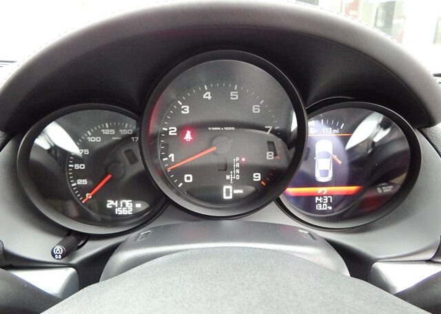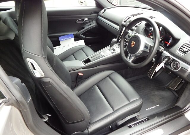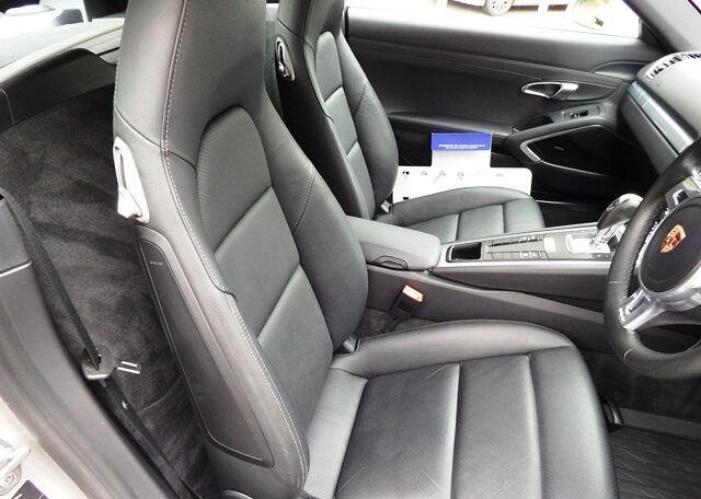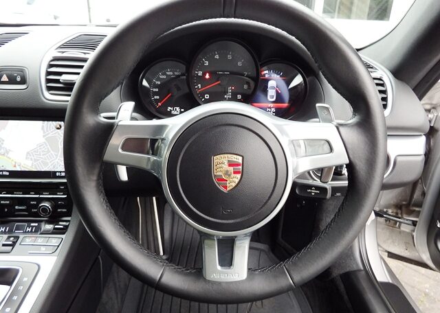 This is a huge specification Cayman 981 2.7 PDK Finished in Platinum Silver Metallic paint with a massive list of factory fitted options which includes Black leather heated seats with Porsche crests embossed,extended leather to include door handles,center console and instrument surround,black dials,3 spoke Sport Design steering wheel with paddle shifters,dual zone climate controlled air conditioning,light design package,Sport design exterior package to include rear defuser,front grilles,side air intakes and mirror bases finished in bodycolour,(PSM) Porsche Stability Management,(PCM3.1) Porsche communications management Satellite navigation with CD player,Bluetooth Phone prep and universal audio interface linked with Bose sound package,CD storage,top tinted windscreen,ultrasonic park assist front and rear,Porsche overmats,auto headlights,luggage partitian,electric folding exterior mirrors,model designation deletion,auto dimming mirrors with rain sensor,Sports exhaust tailpipes in black,calipers finished in red,fully refurbished 20 inch Carrera Classic alloy wheels with new oem colour crested centers wrapped in Pirelli P Zero N rated tyres to complete the package and a very special 981. This stunning Cayman comes complete with a fully documented OPC Porsche plus Porsche specialist service record totaling 6 stamps together with all spare keys and handbook pack.Stunning looks with a huge specification,Outstanding!