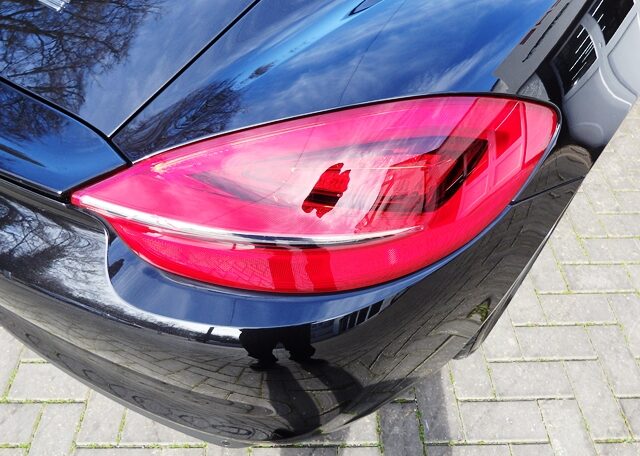 While it has a similar profile, it’s lower and wider with more muscular proportions and sharper detailing. Like the Boxster, the slender rear spoiler runs neatly into the tail-lamps, and our entry-level Cayman looks just as good as the Cayman S.