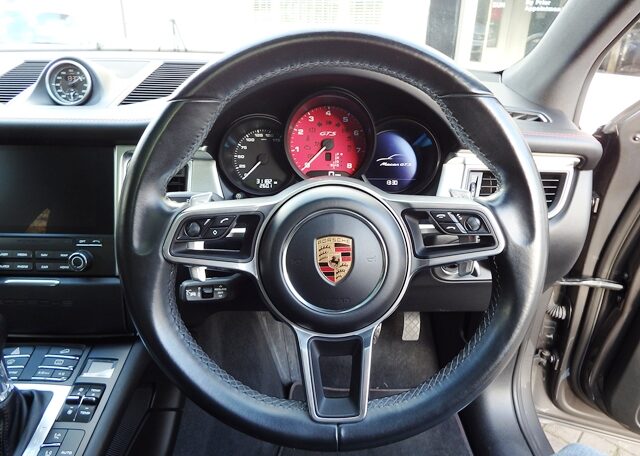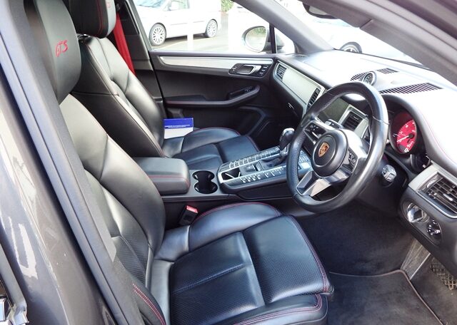 A stunning condition huge unique specification Macan 3.0 Turbo GTS PDK finished in Agate Grey metallic Paint.Complete with a huge list of factory fitted options which include (PDK) Porsche Doppelkupplung double clutch 7 speed gearbox including auto start,GTS leather interior package with contrasting stiching in carmine red,sport design package with side skirts,heated seats front and back,Adaptive 14 way electric sports seats including comfort memory package,extended leather to include dashboard and doors,seatbelts in garnet red,instrument dials in garnet red,Porsche entry and drive,Sport design heated multifunction smooth leather steering wheel with paddle controls,brushed alluminium interior package,panaramic glass sunroof,power steering plus,adaptive cruise control inc Porsche active safe (PAS),(PSE) Porsche switchable sports exhaust inc sports tailpipes in black,sport chrono package plus,(PASM) Porsche active suspension management,Air suspension with self levelling ride height control,lane keeping assist,roof rails in black,monochrome black exterior package in high gloss,exterior mirrors with power fold,(PSM) Porsche stability management,auto headlights,(TPMS) Tyre Pressure Monitoring System,Bi xenon headlights,headlight cleaning system,three zone climate controlled air conditioning,speed limit indicator,Power lift tailgate,front and rear ultrasonic park assist with surround view,(PCM4) Porsche communications management 7″ TFT touchscreen with navigation module,telephone module,DAB function,CD player,Bluetooth,universal audio interface for IPod and USB linked Porsche connect plus for Carplay connectivity together with Bose sound system,top tint windscreen,privacy glass,light comfort package,model designation in black,75ltr fuel tank,loadspace management system,(PVTS) Porsche vehicle tracking system,Porsche overmats,20 inch RS Spyder alloy wheels in satin black with colour crested wheel centers wrapped in Dunlop all season tyres to make this Macan stand out from others GTS models! This stunning Macan has been lovingly kept and maintained and comes with a fully documented OPC Porsche service record with 3 stamps together with all handbook pack and spare keys.The car is a pleasure for us to sell and with its massive £20k in spec and stunning looks make a very special GTS!